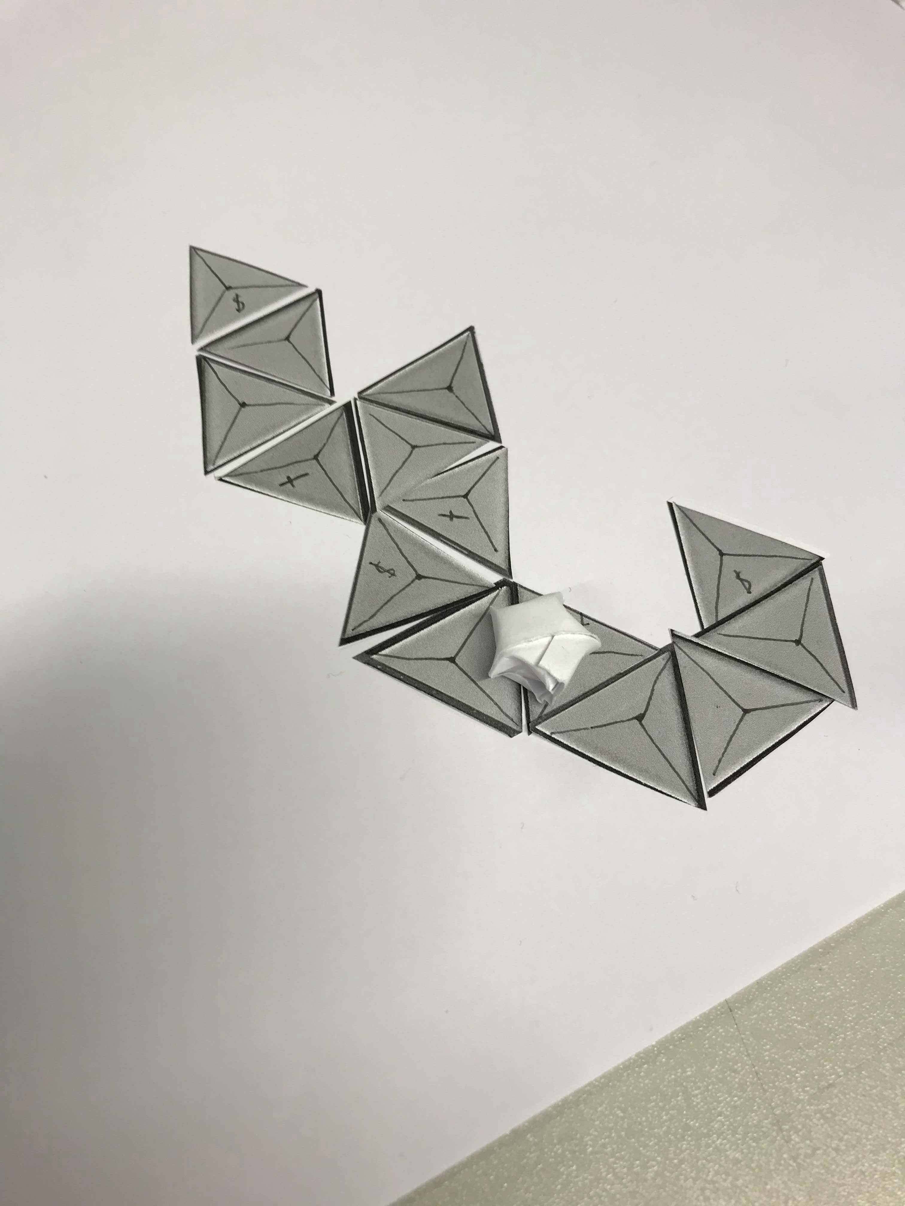 1 – Triangle tiles that can be used for movement, the tiles will have 3 sections that can have either a plain space, resource space, combat space. Move to a unique tile to be able to overpower you opponents. When in combat role the dice to see if your able to attack or use an item against the upcoming enemy.